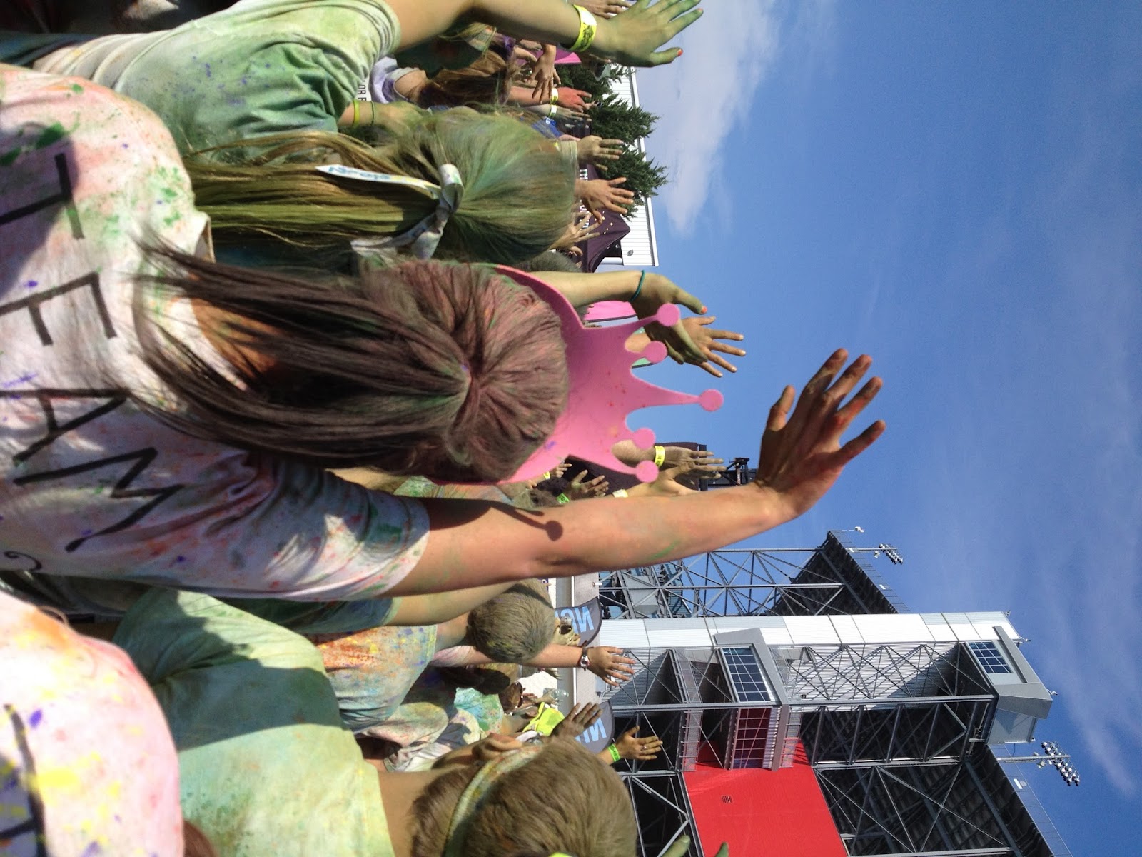 Every 15 minutes or so, they count down to when everyone can throw their packet of color into the air. It's craziness! It's like Barney the Dinosaur's Mosh Pit.