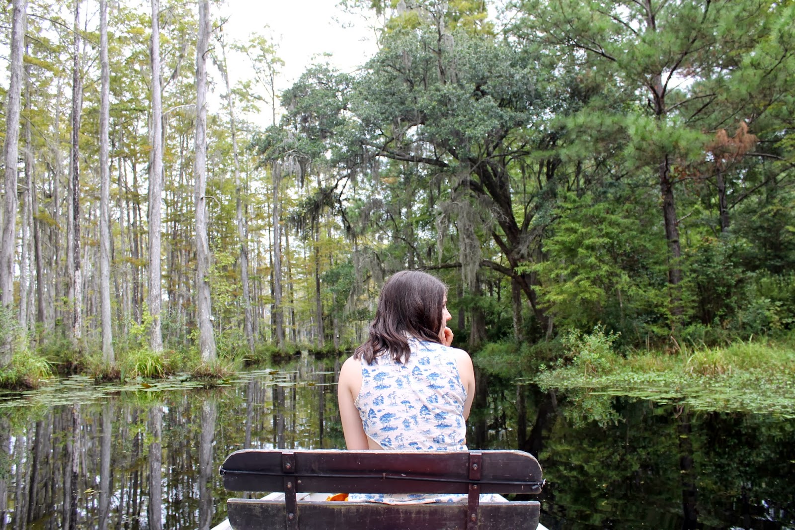 Despite my immense, near-paralyzing fear of dying via alligator attack, we (I) nervously scrambled into a flimsy wooden boat because, romance.